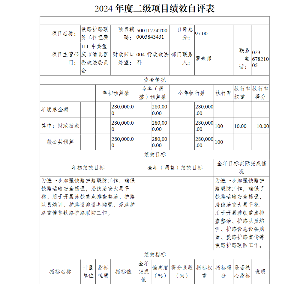 中共重庆市渝北区委政法委员会2024年部门决算情况说明及附表.pdf