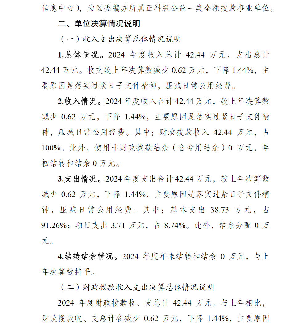 重庆市渝北区机构编制信息中心2024年单位决算情况说明
