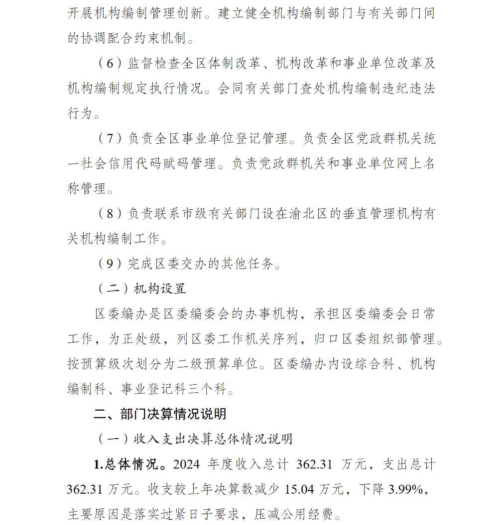 中共重庆市渝北区委机构编制委员会办公室2024年部门决算情况说明及附表.pdf