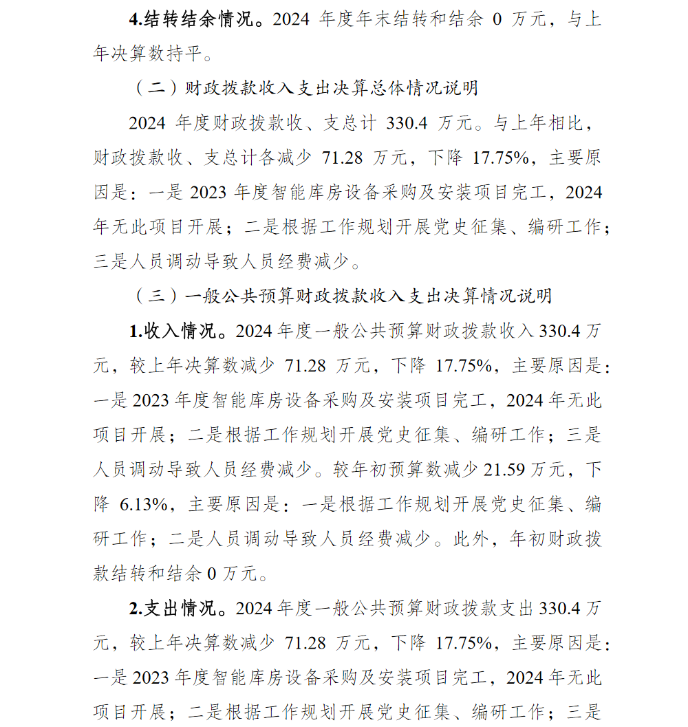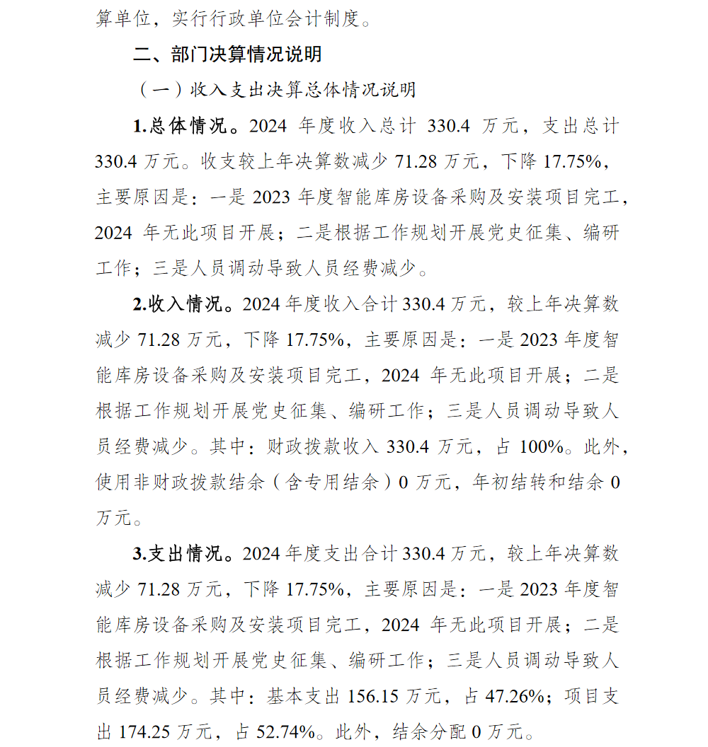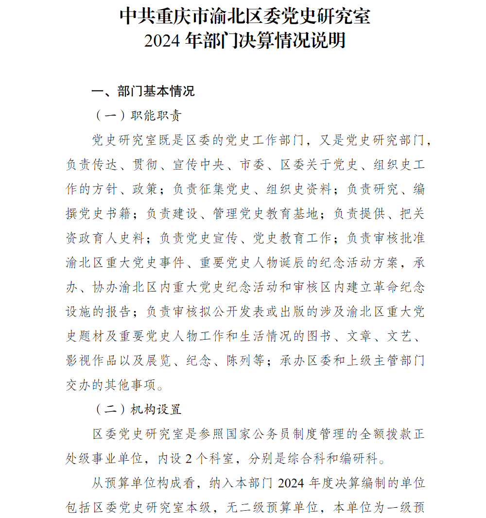 中共重庆市渝北区委党史研究室2024年部门决算情况说明