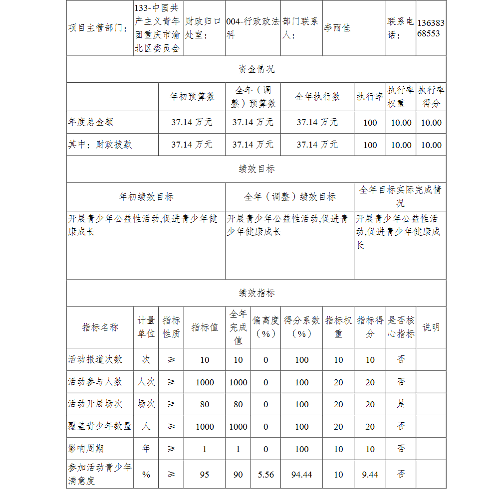 中国共产主义青年团重庆市渝北区委员会2024年部门决算情况说明及附表.pdf