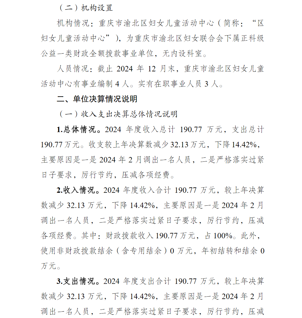 重庆市渝北区妇女儿童活动中心2024年单位决算情况说明