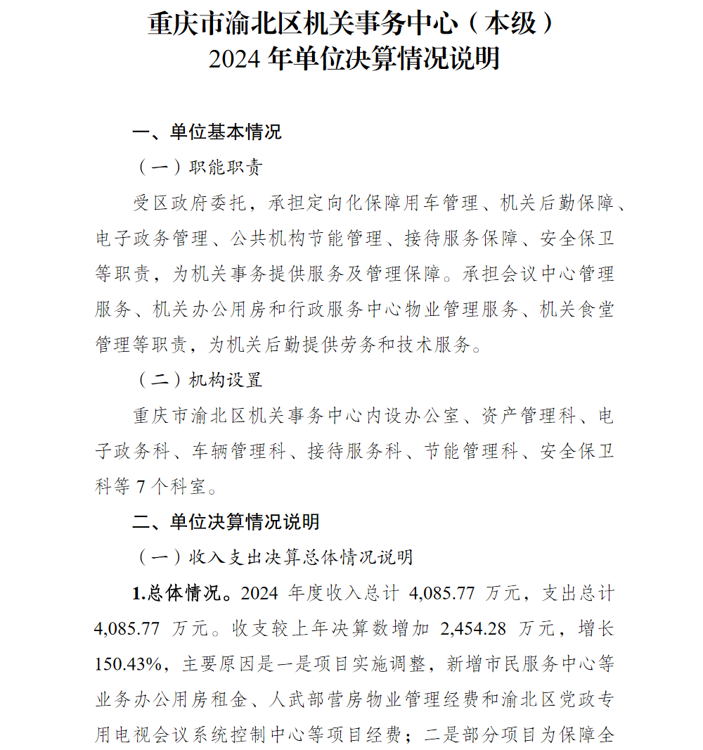 重庆市渝北区机关事务中心(本级)2024年单位决算情况说明