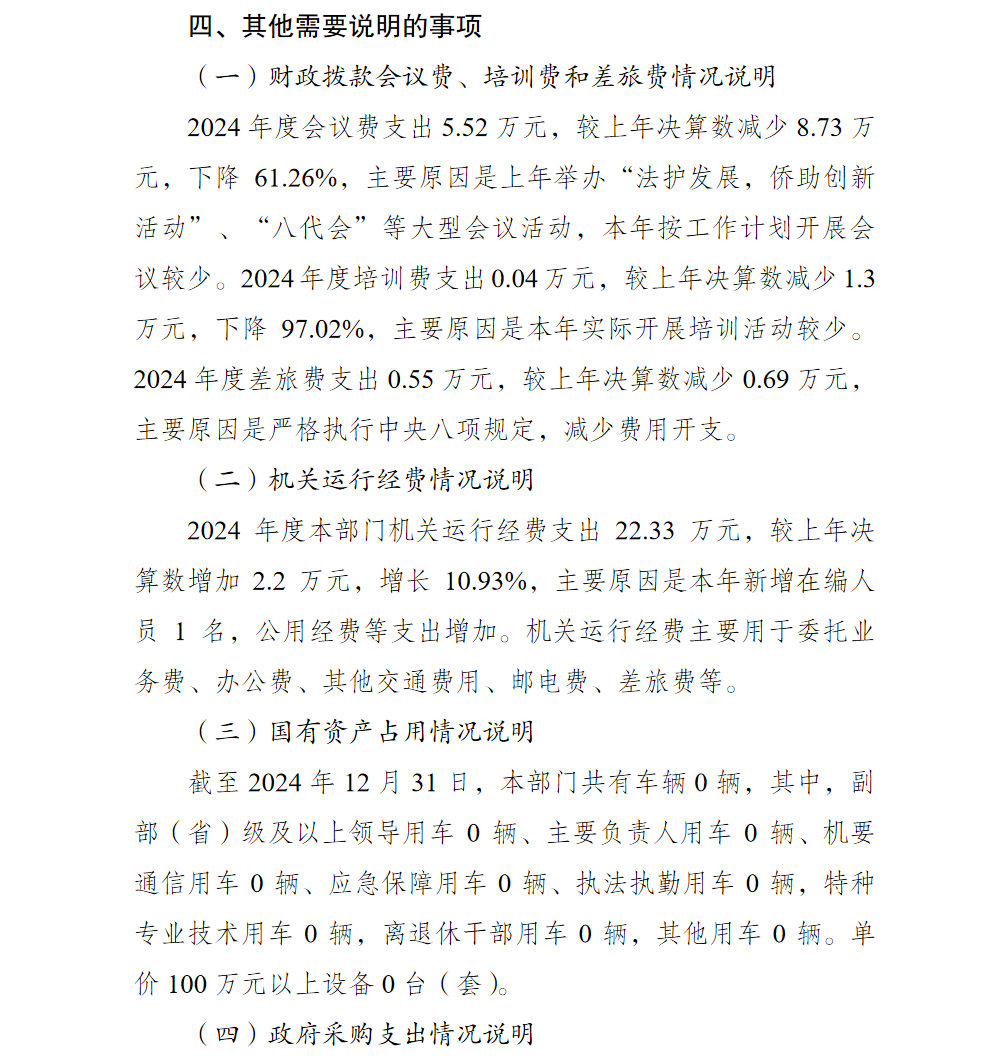 重庆市渝北区归侨侨眷联合会2024年部门决算情况说明