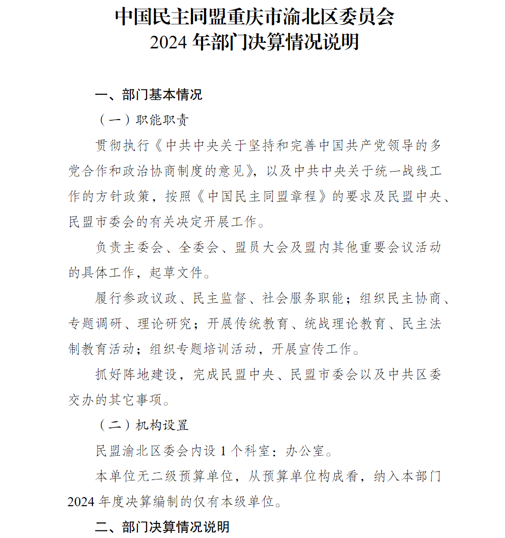 中国民主同盟重庆市渝北区委员会2024年部门决算情况说明及附表.pdf