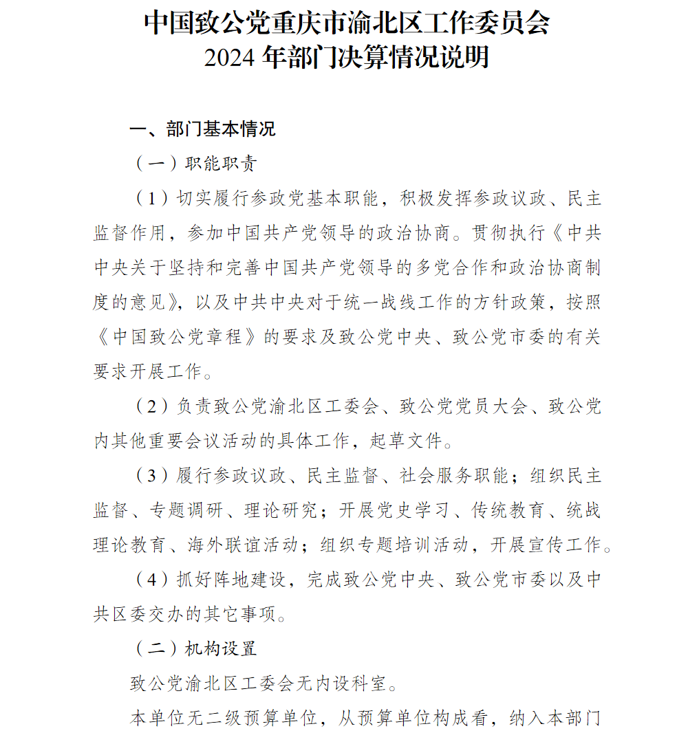 中国致公党重庆市渝北区工作委员会2024年部门决算情况说明及附表.pdf