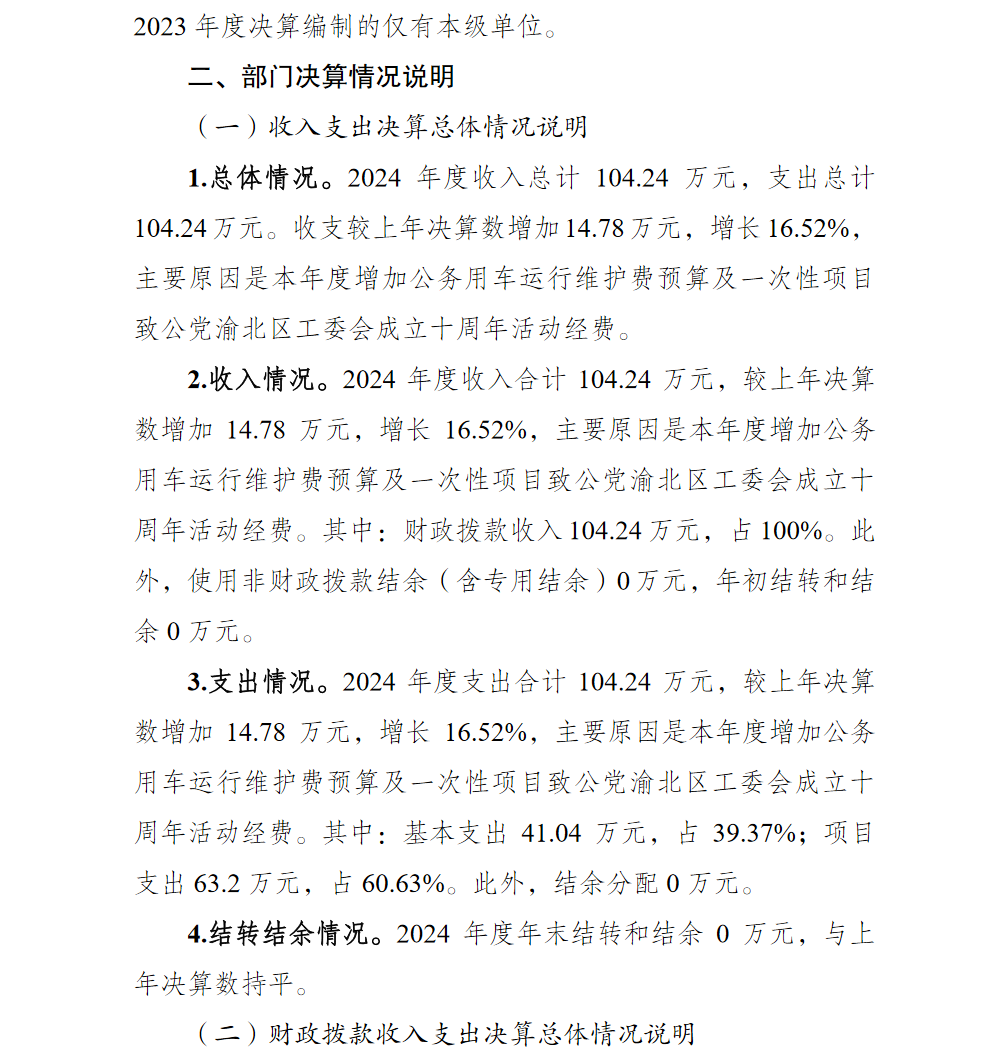 中国致公党重庆市渝北区工作委员会2024年部门决算情况说明
