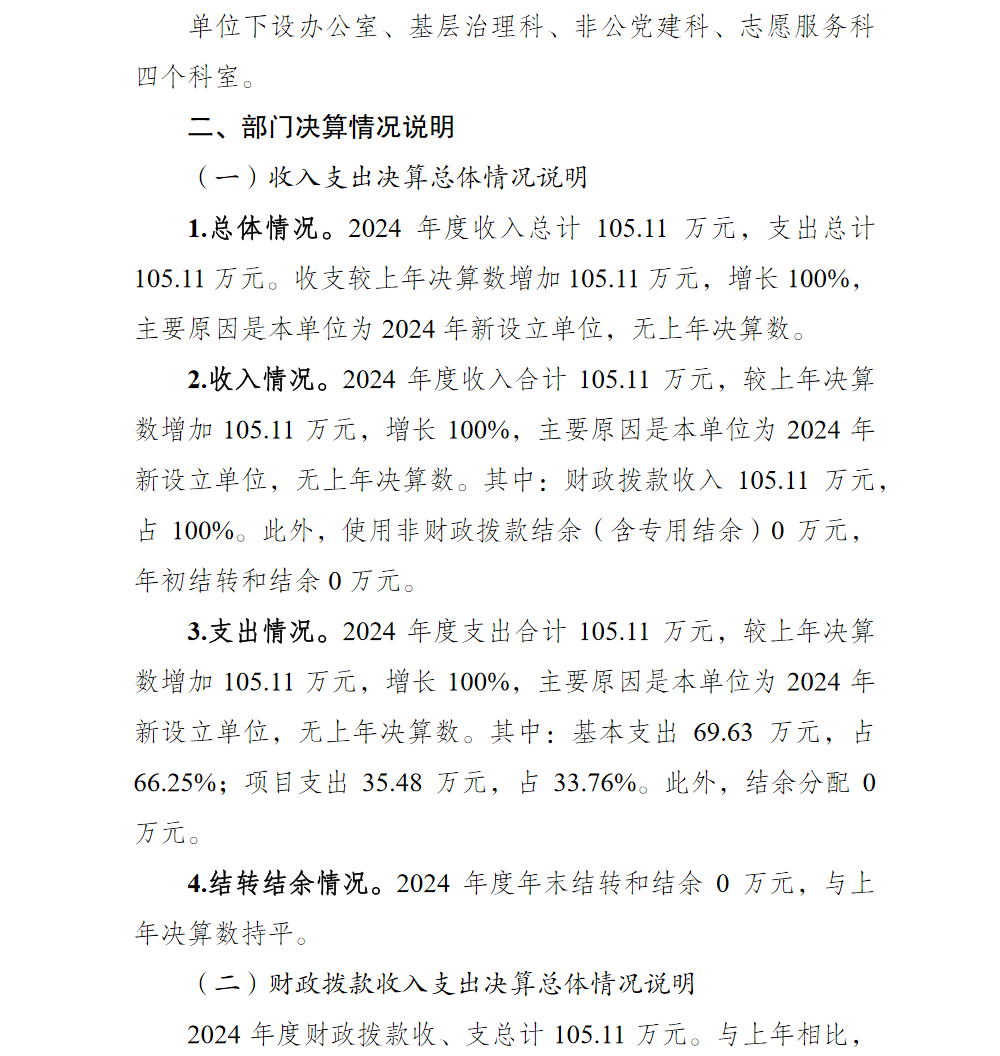 中共重庆市渝北区委社会工作部2024年部门决算情况说明