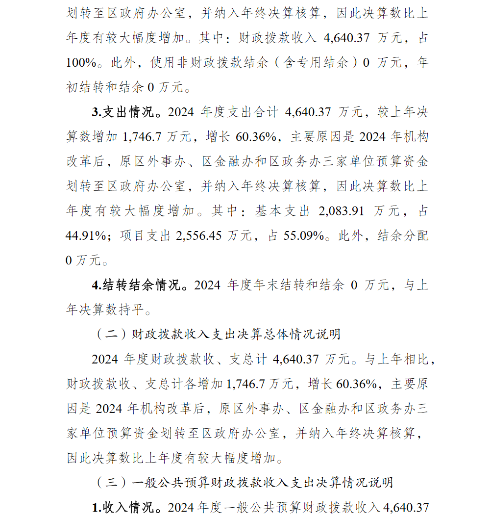 重庆市渝北区人民政府办公室(本级)2024年单位决算情况说明