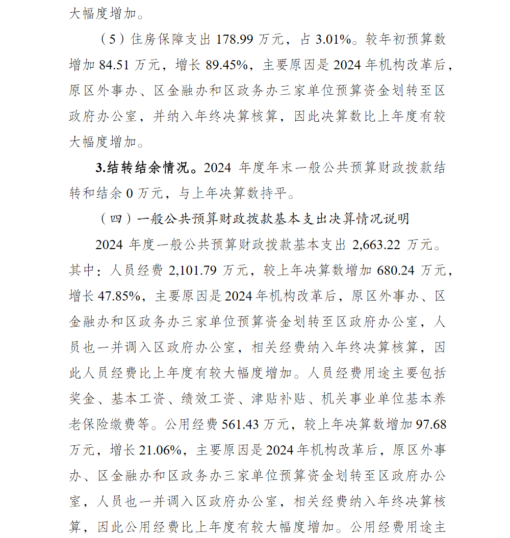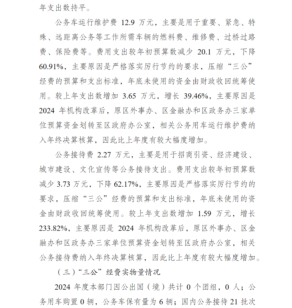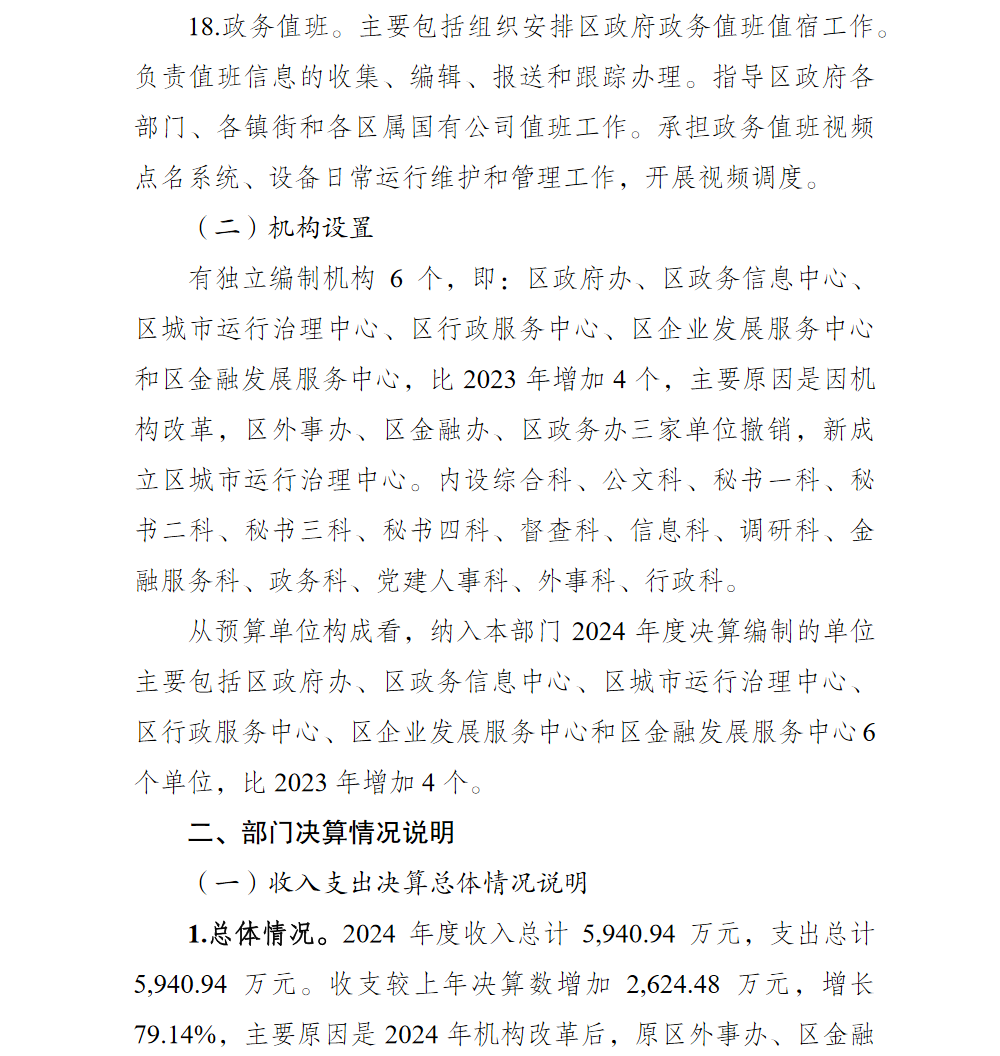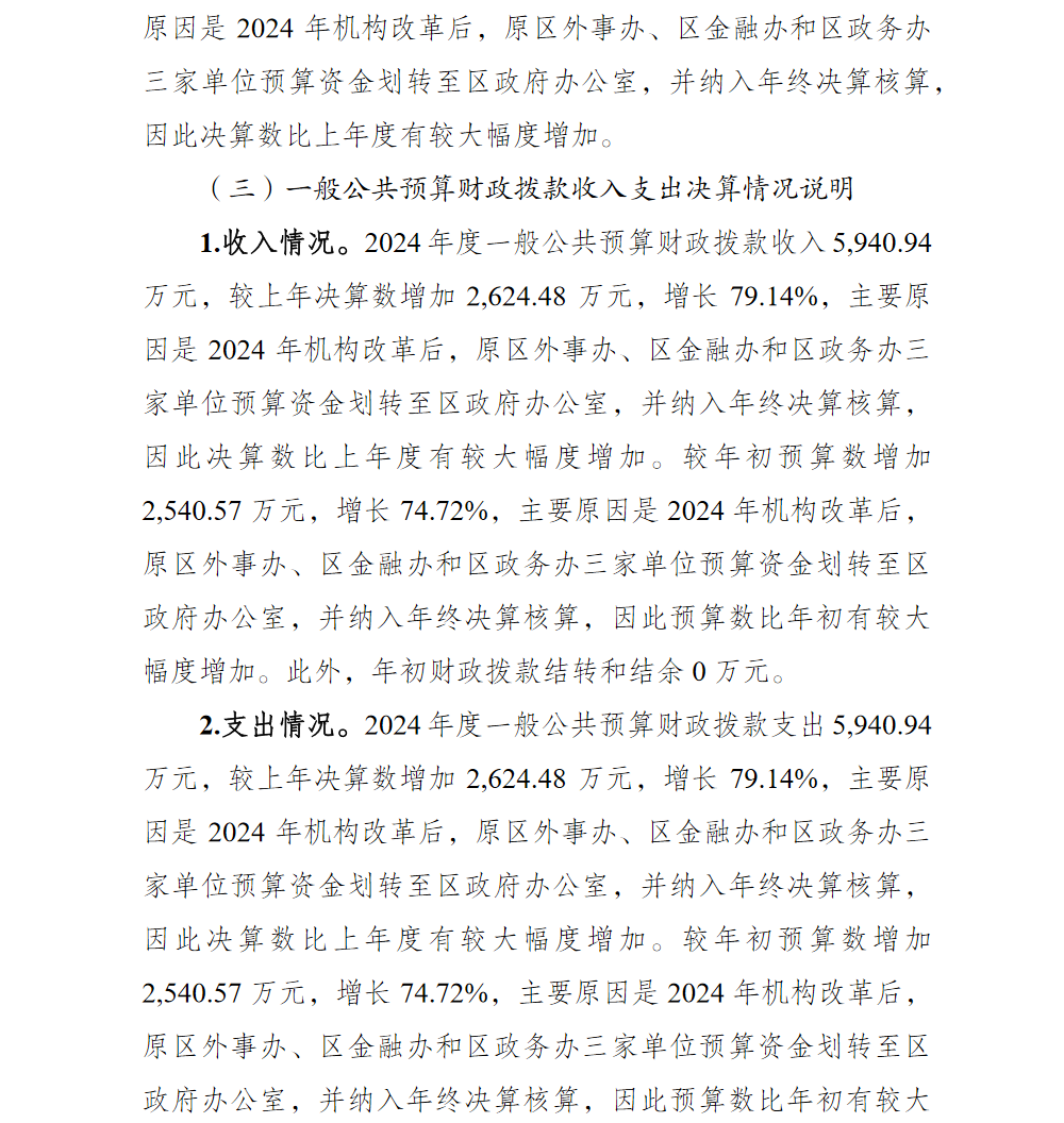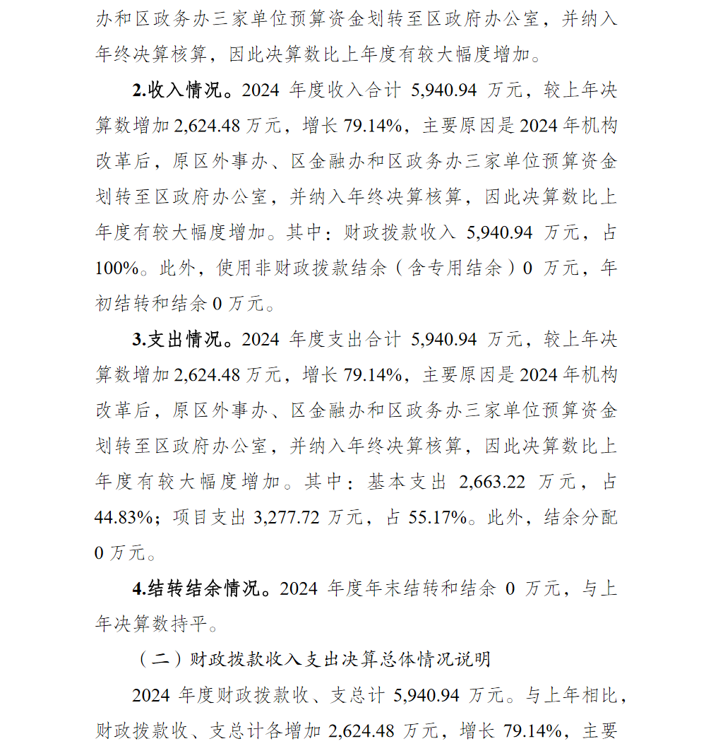 重庆市渝北区人民政府办公室2024年部门决算情况说明